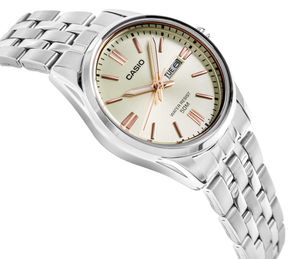 Zegarek damska CASIO LTP-1335D-9AVDF to perfekcyjne połączenie klasyki z nowoczesnością. Jego złocisto-szampańska tarcza i stalowa bransoleta sprawiają, że idealnie pasuje do eleganckich stylizacji. Funkcja datownika z dniem tygodnia ułatwi Ci codzienne planowanie, a wodoszczelność do 50 metrów zapewni Ci spokój podczas każdej aktywności. Dzięki kwarcowemu mechanizmowi zegarek jest precyzyjny, a mineralne szkiełko ochroni tarczę przed uszkodzeniami. Zegarek jest także antyalergiczny, bezpieczny dla skóry. Dzięki eleganckiej konstrukcji i optymalnej ochronie, zegarek CASIO LTP-1335D-9AVDF będzie doskonałym dodatkiem do Twojej garderoby.