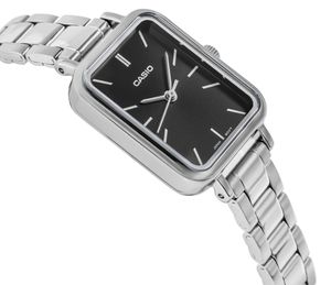 CASIO LTP-1234DS-2ADF to damski zegarek zaprojektowany dla kobiet ceniących subtelną elegancję w klasycznej formie. Smukła prostokątna koperta w połączeniu z lśniącą srebrną bransoletą tworzy minimalistyczny, a jednocześnie wyrafinowany efekt, który doskonale podkreśla codzienną stylizację. Tarcza wykonana z naturalnej masy perłowej zachwyca unikalnym, lekko błękitnym połyskiem — każdy egzemplarz prezentuje niepowtarzalny wzór, dzięki czemu zegarek wygląda jak biżuteria o indywidualnym charakterze.