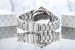 Zegarek wyposażony jest w trwałe, mineralne szkiełko odporne na zarysowania oraz precyzyjny mechanizm kwarcowy zasilany baterią, co gwarantuje dokładność i niezawodność działania. Segmentowana bransoleta ze stali nierdzewnej zapewnia komfort noszenia, a jej elegancki srebrny kolor podkreśla kobiecy charakter dodatku. Solidne zapięcie Pusher Foldover Clasp z dwoma przyciskami bocznymi gwarantuje bezpieczeństwo i wygodę użytkowania.