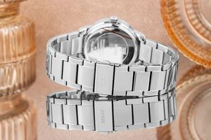 Zegarek damski Guess Petal GW0747L1 to wyraz nowoczesnej elegancji i ponadczasowego stylu, który podkreśla kobiecą pewność siebie. Koperta o średnicy 36 mm wykonana ze stali szlachetnej idealnie dopasowuje się do nadgarstka, zapewniając wygodę noszenia przez cały dzień. Srebrna, analogowa tarcza z mineralnym szkłem wyróżnia się wyrazistymi detalami, które nadają zegarkowi wyjątkowego charakteru. Solidna, srebrna bransoleta ze stali nierdzewnej łączy trwałość z luksusowym wykończeniem i komfortem, a precyzyjny mechanizm kwarcowy zapewnia niezawodność i łatwość obsługi. Wodoszczelność na poziomie 30 metrów chroni zegarek przed deszczem i zachlapaniami, choć nie jest przeznaczona do pływania. Model Petal to doskonały wybór dla kobiety, która ceni sobie zarówno funkcjonalność, jak i styl. Zegarek świetnie sprawdzi się w codziennych stylizacjach oraz podczas eleganckich wydarzeń, a w zestawie z oryginalnym pudełkiem Guess stanowi gotowy, luksusowy prezent.
