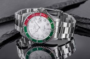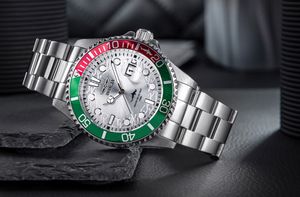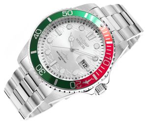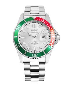 Invicta Pro Diver 44714 to zegarek stworzony z myślą o mężczyznach, którzy cenią mocny styl, techniczną precyzję i elegancję w jednym. Jego wyrazista konstrukcja przyciąga wzrok połączeniem srebrnej stali z dynamicznym akcentem zielono-czerwonej obręczy, a srebrna tarcza z subtelnym wykończeniem Sun Ray dodaje jej głębi i charakteru. W centralnym punkcie uwagę przyciąga wizerunek rekina – symbol determinacji, siły i odwagi, który idealnie oddaje ducha kolekcji Pro Diver.