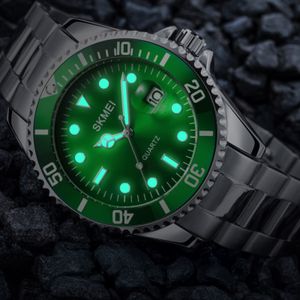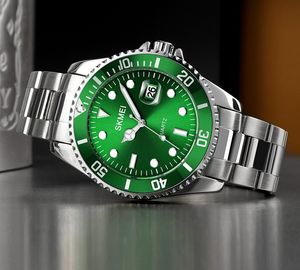 Skmei 1779SIGN to zegarek, który łączy luksusowy wygląd z przystępną ceną. Zielona tarcza i bezel inspirowane kultowym Rolexem Submariner „Hulk” nadają mu prestiżowego charakteru. Stalowa bransoleta, fluorescencyjne indeksy i szkło powiększające nad datownikiem czynią go idealnym połączeniem elegancji, funkcjonalności i męskiego stylu.