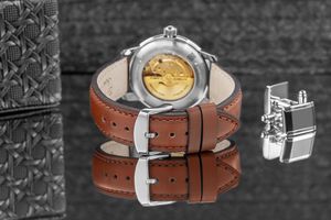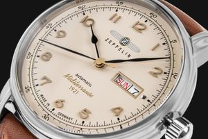 Zegarek męski Zeppelin Mediterranee Automatic 9664-5 to połączenie elegancji i klasyki w najlepszym niemieckim wydaniu. Inspirowany śródziemnomorskim stylem zachwyca kremową tarczą z subtelnymi złotymi indeksami i czarnymi wskazówkami, które gwarantują doskonałą czytelność. Japoński mechanizm automatyczny Miyota 8205 widoczny przez przeszklony dekiel podkreśla kunszt wykonania, a stalowa koperta i brązowy, skórzany pasek tworzą harmonijną kompozycję. Zegarek uzupełnia utwardzane szkło mineralne K1 oraz wodoszczelność 5 ATM, dzięki czemu stanowi idealny wybór dla mężczyzny ceniącego precyzję, styl i tradycję.